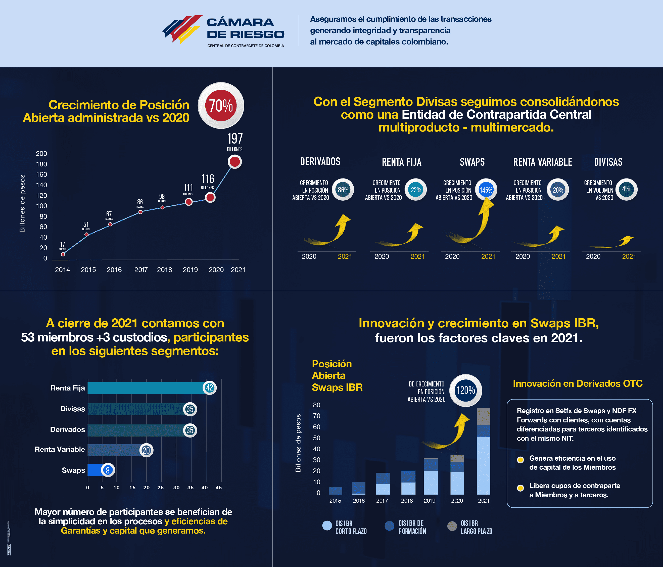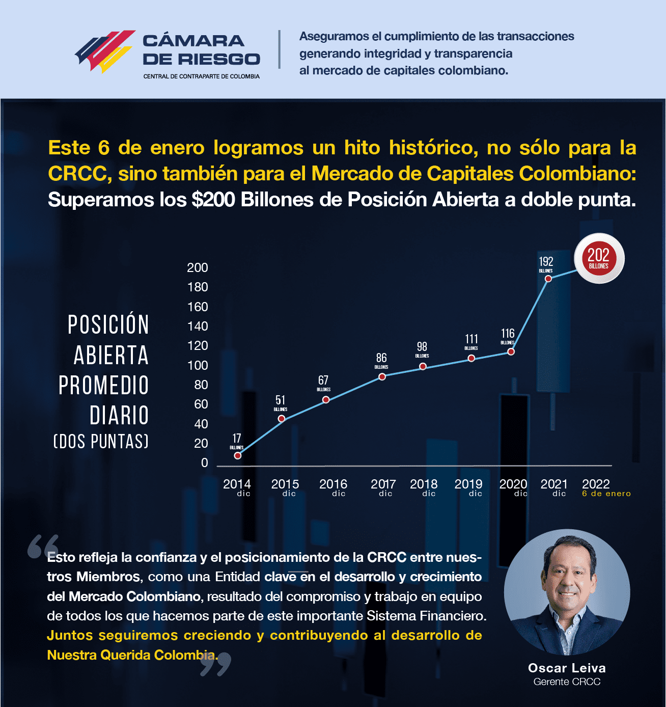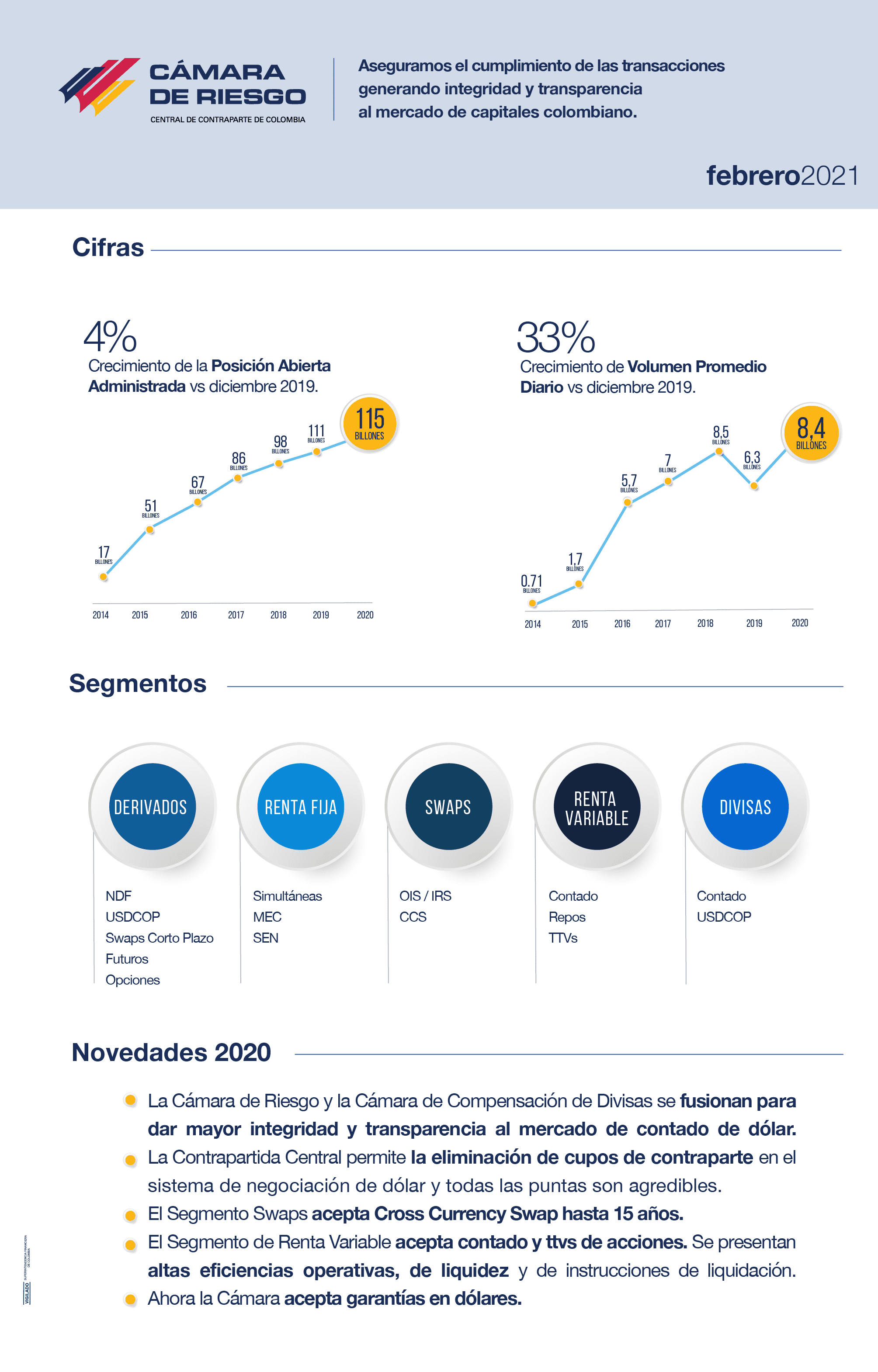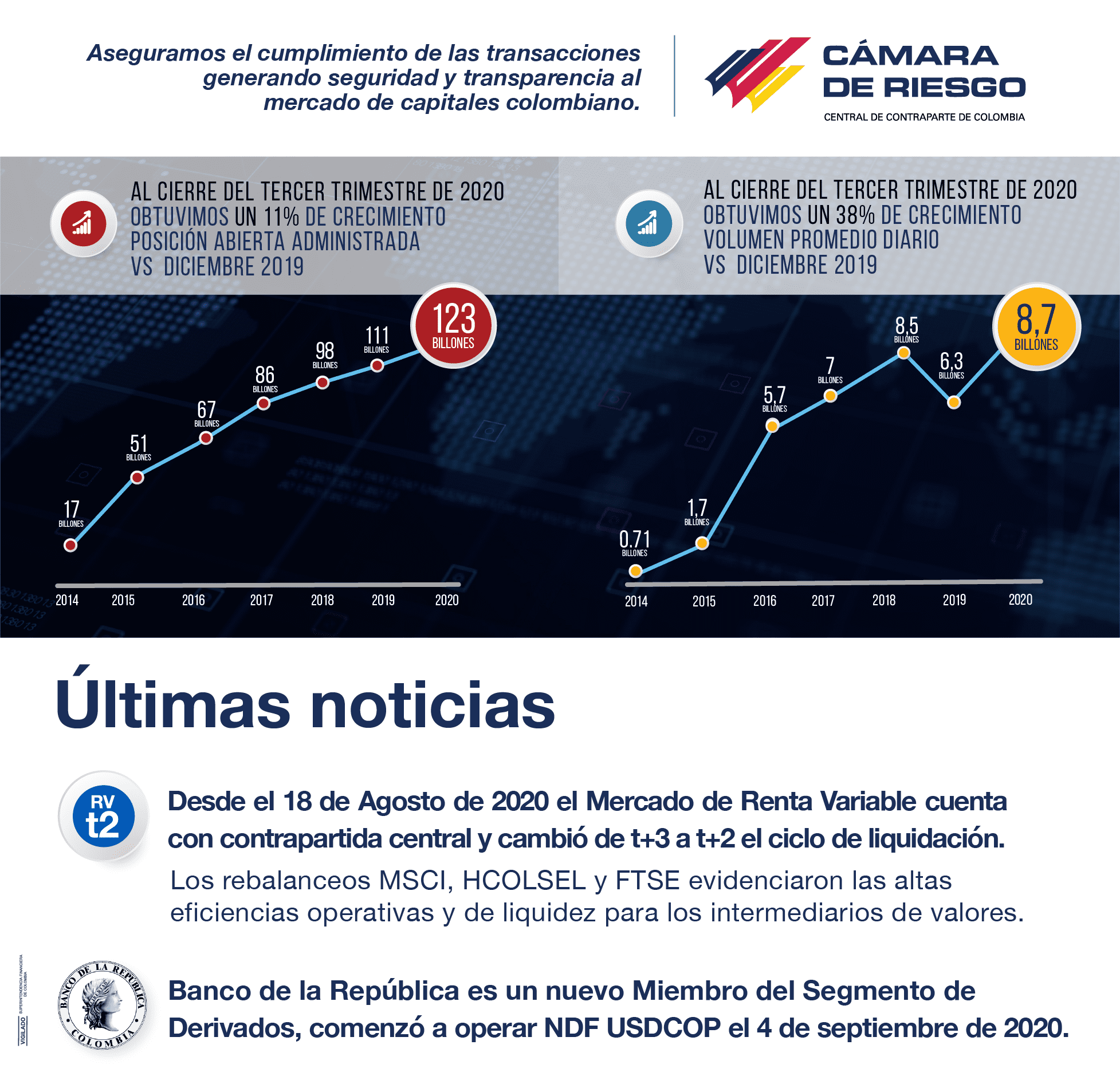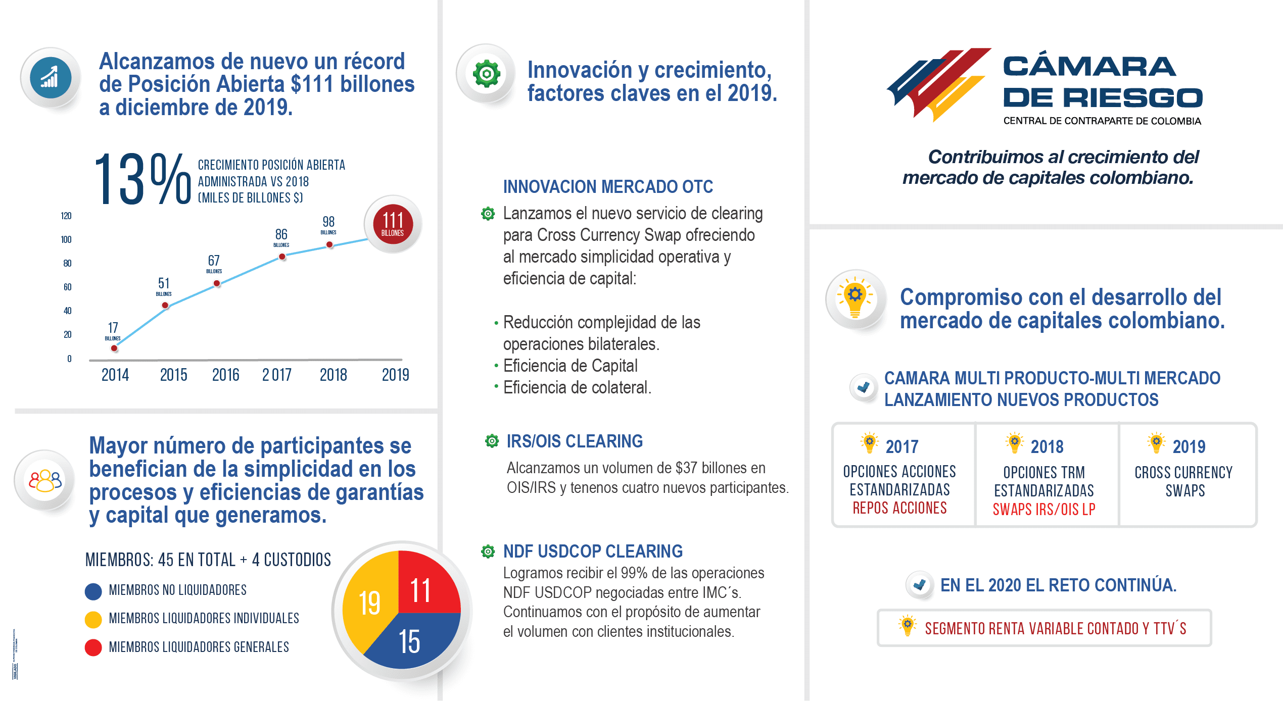 10 años contribuyendo al crecimiento del mercado de capitales. En el 2017 la Cámara de riesgo administra el riesgo de contraparte de una Posición Abierta de $86 billones de pesos.
