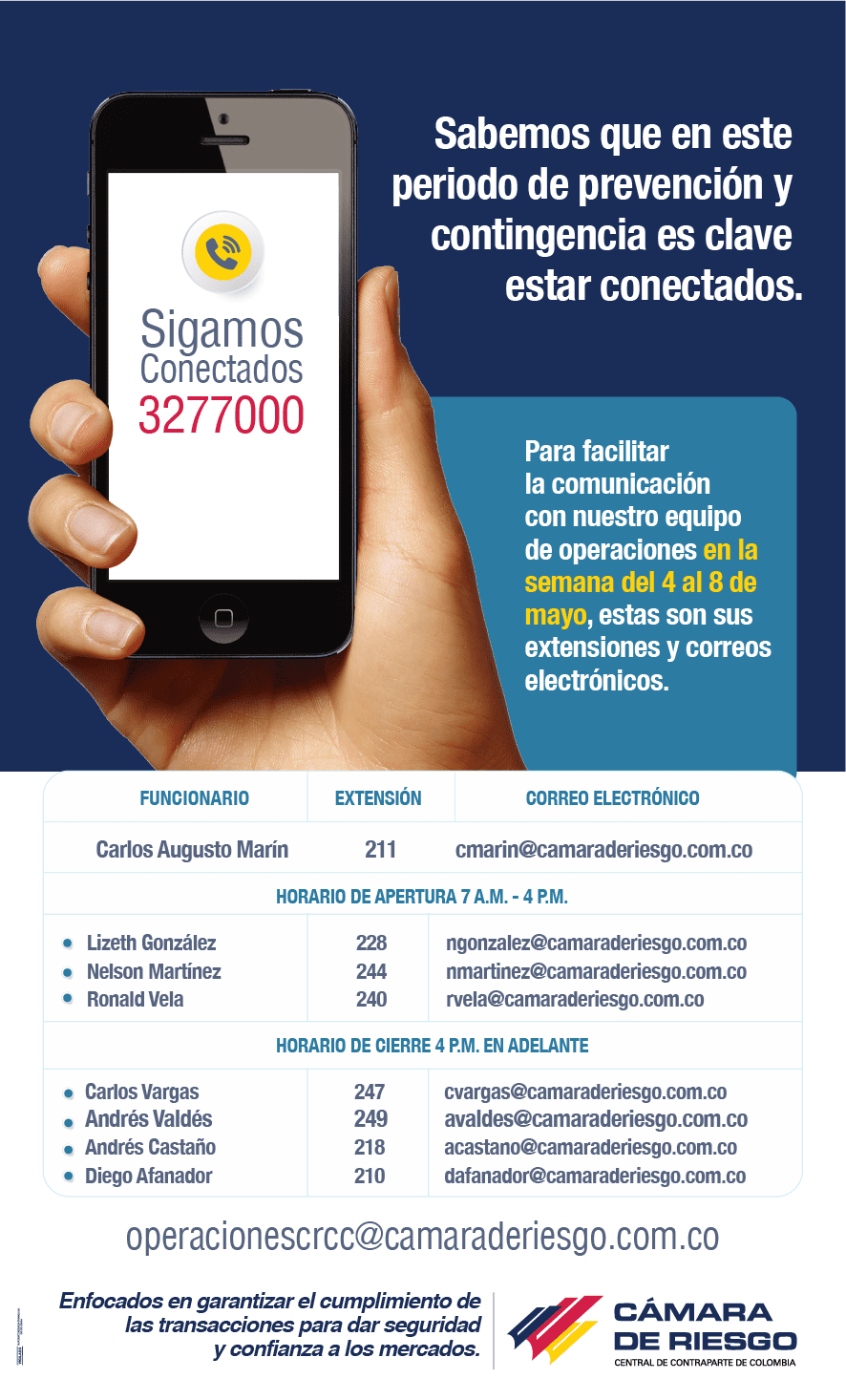 Directorio de atención telefónica de la Cámara de Riesgo Central de Contraparte de Colombia S.A