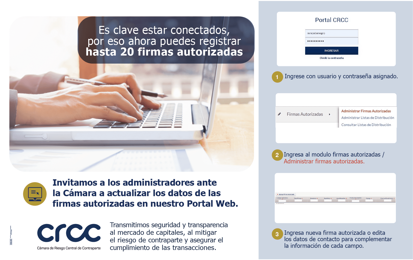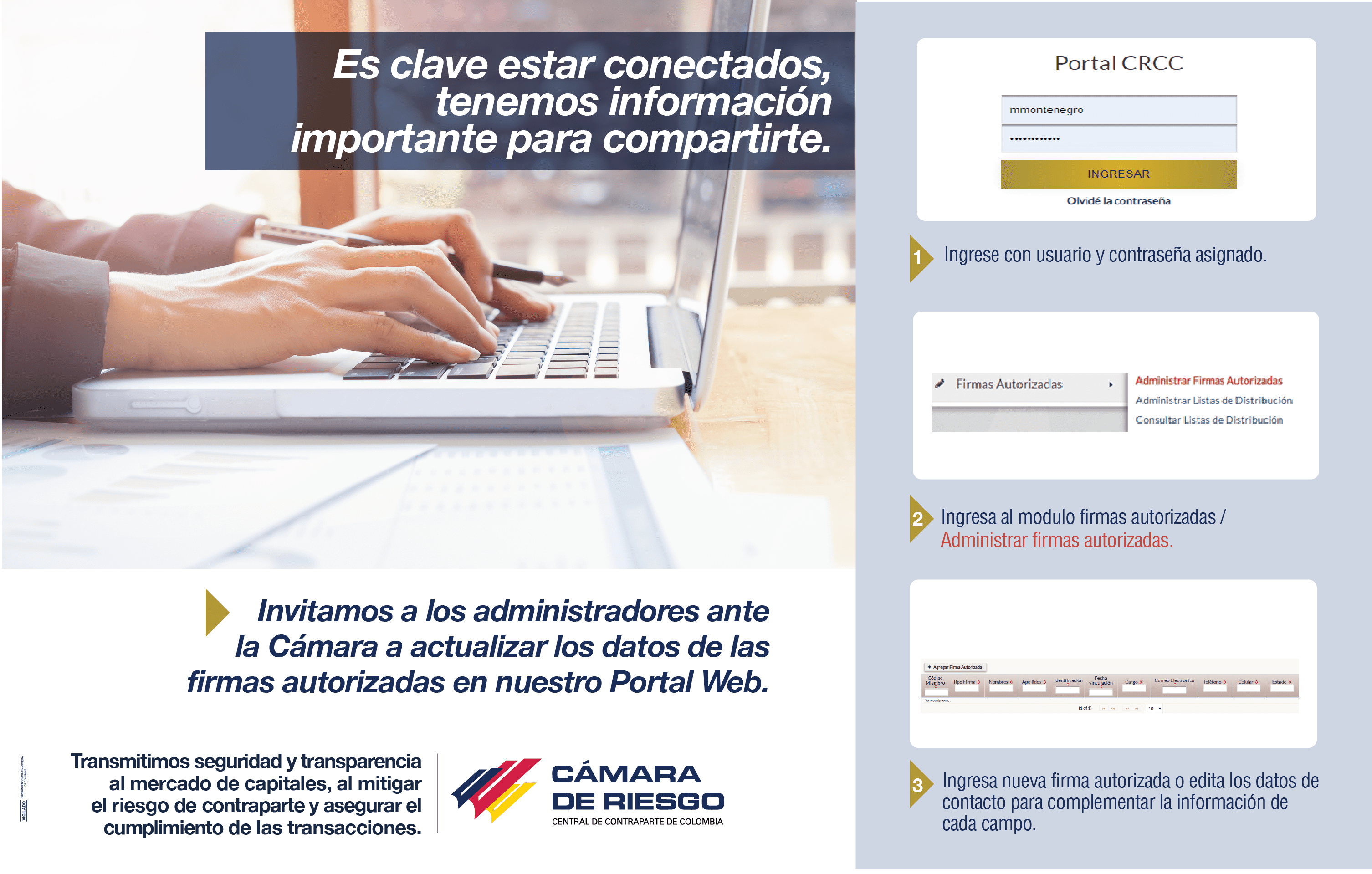 La Cámara de Riesgo invita a todos sus Miembros a realizar la actualización de las firmas autorizadas que tienen registradas con la Entidad.
