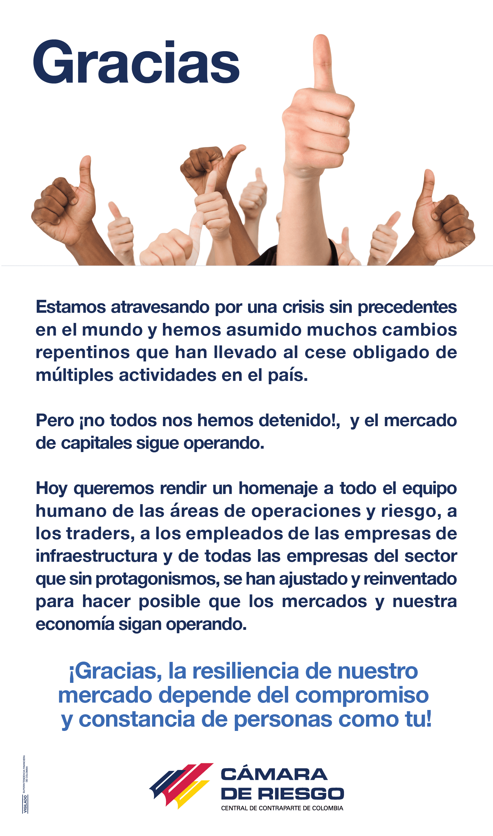 La CRCC S.A agradece al mercado financiero la confianza depositada en su gestión en estos 4 años en el mercado de derivados en Colombia y hace reconocimiento a las siguientes entidades.
