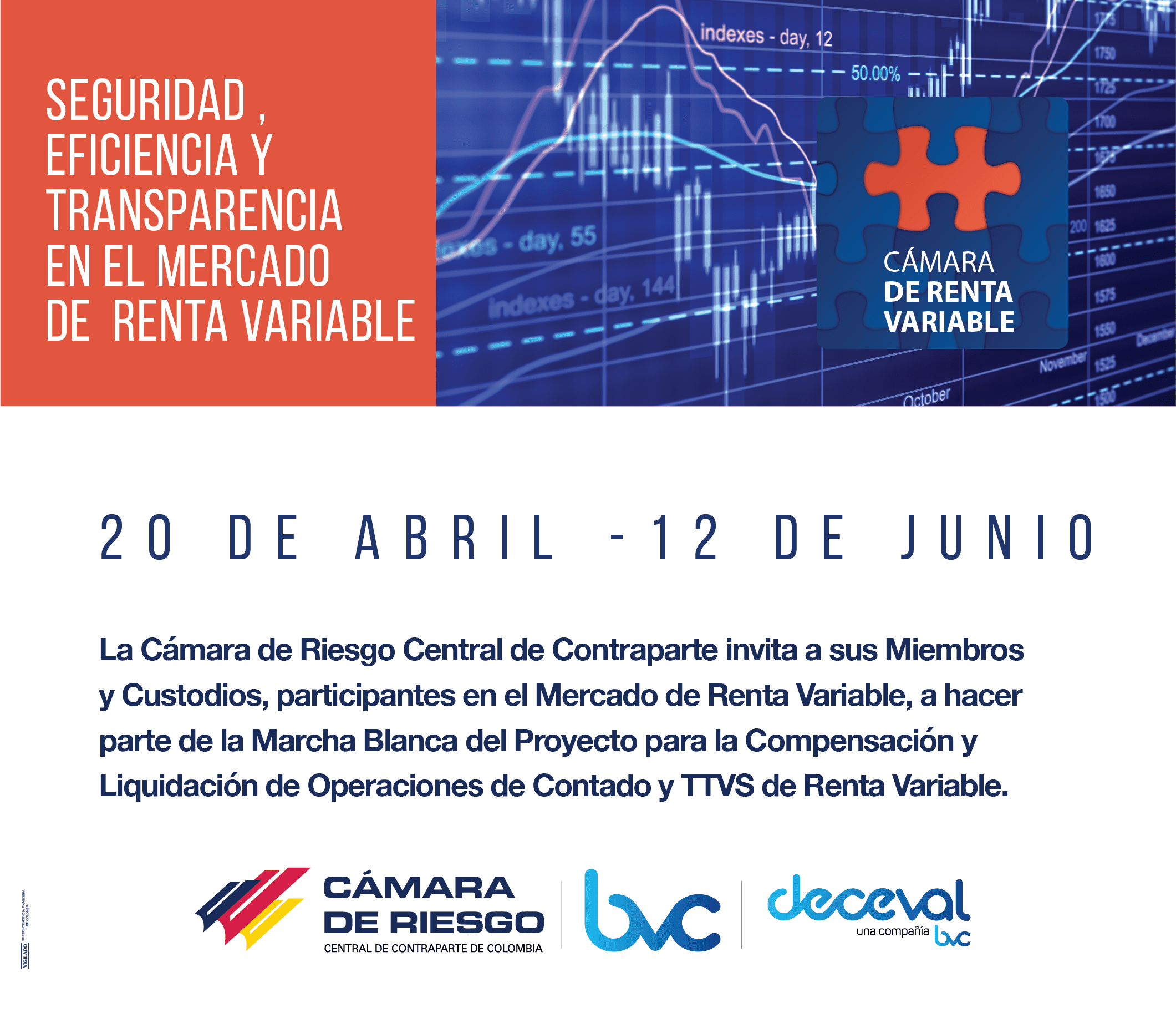La Cámara invita a sus Miembros y Custodios, participantes en el Mercado de Renta Variable a hacer parte de la Marcha Blanca del Proyecto para la compensación y liquidación de Operaciones de Contado y TTVS de Renta Variable
