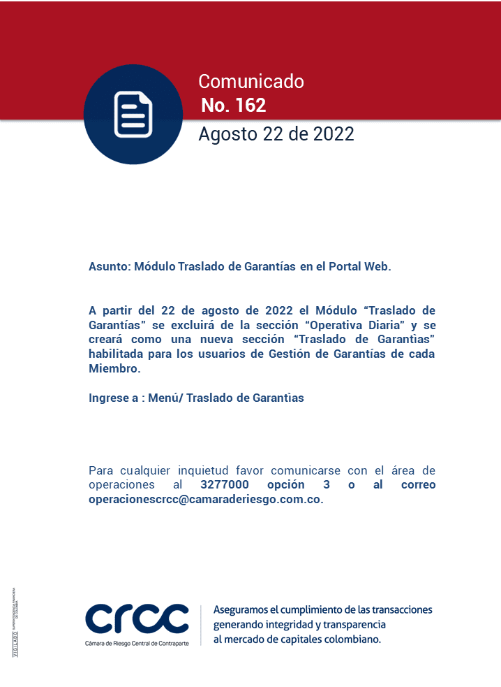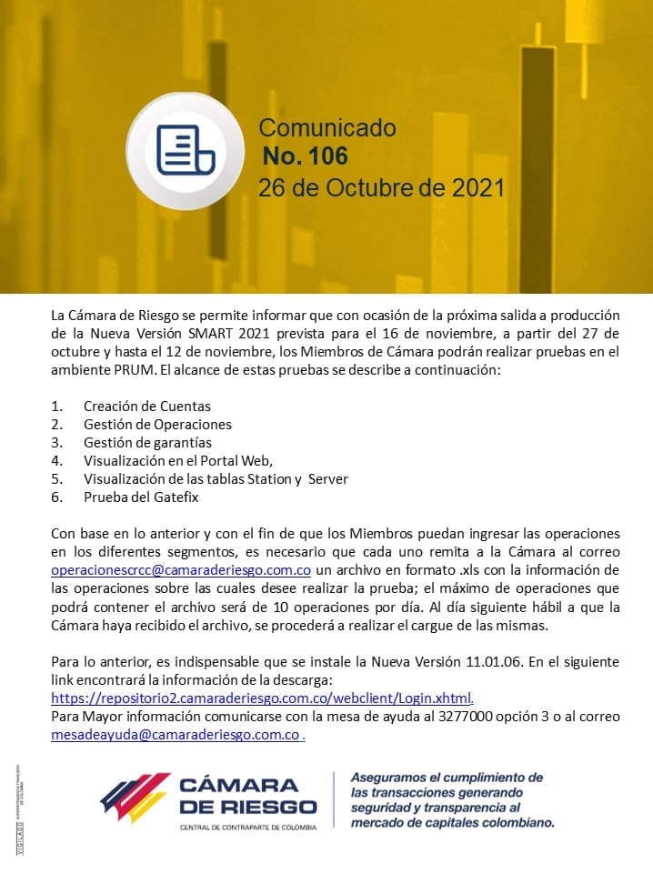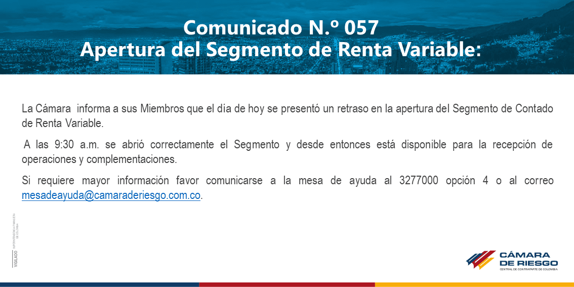 Comunicado Gerente Cámara de Riesgo Central de Contraparte de Colombia S.A