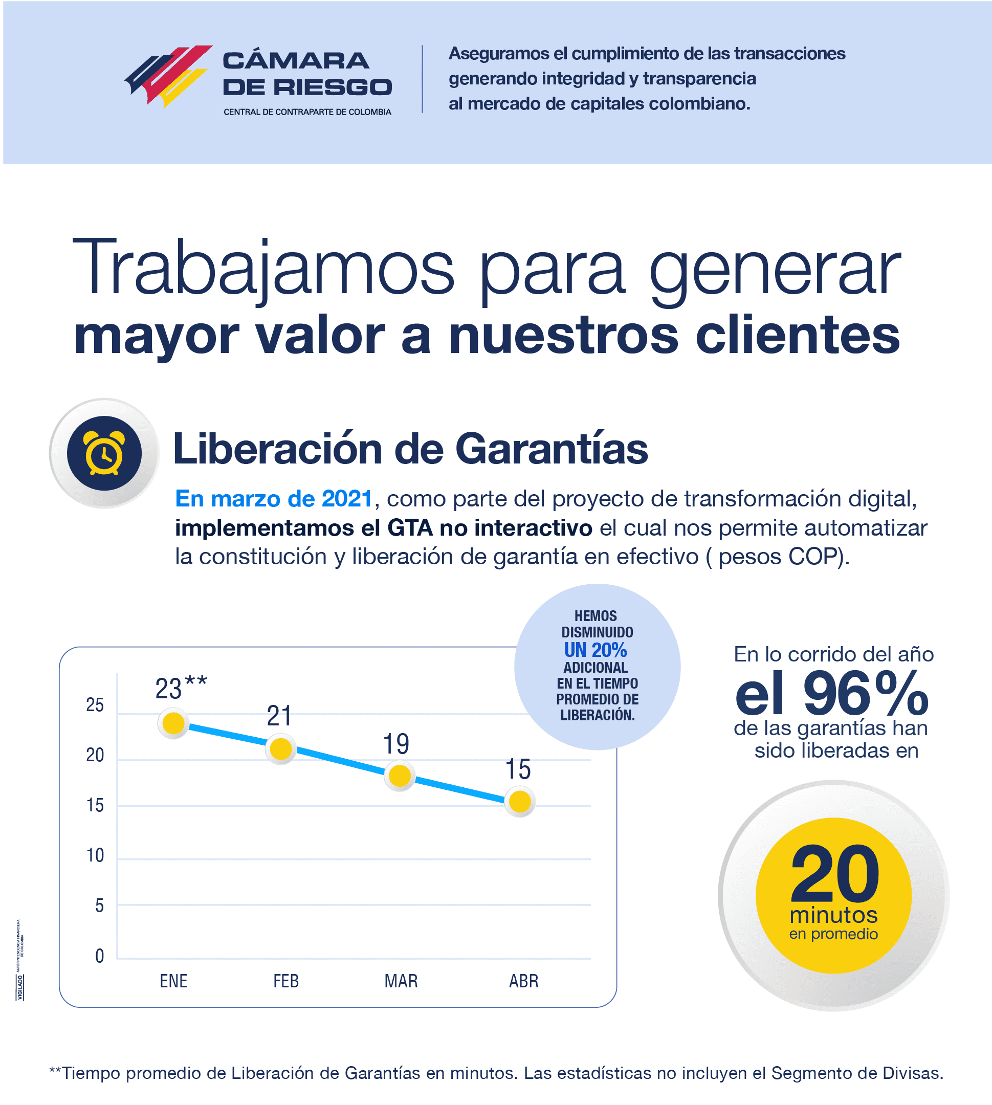 En el 2021 el 96% de las garantías han sido liberadas en 20 minutos en promedio!