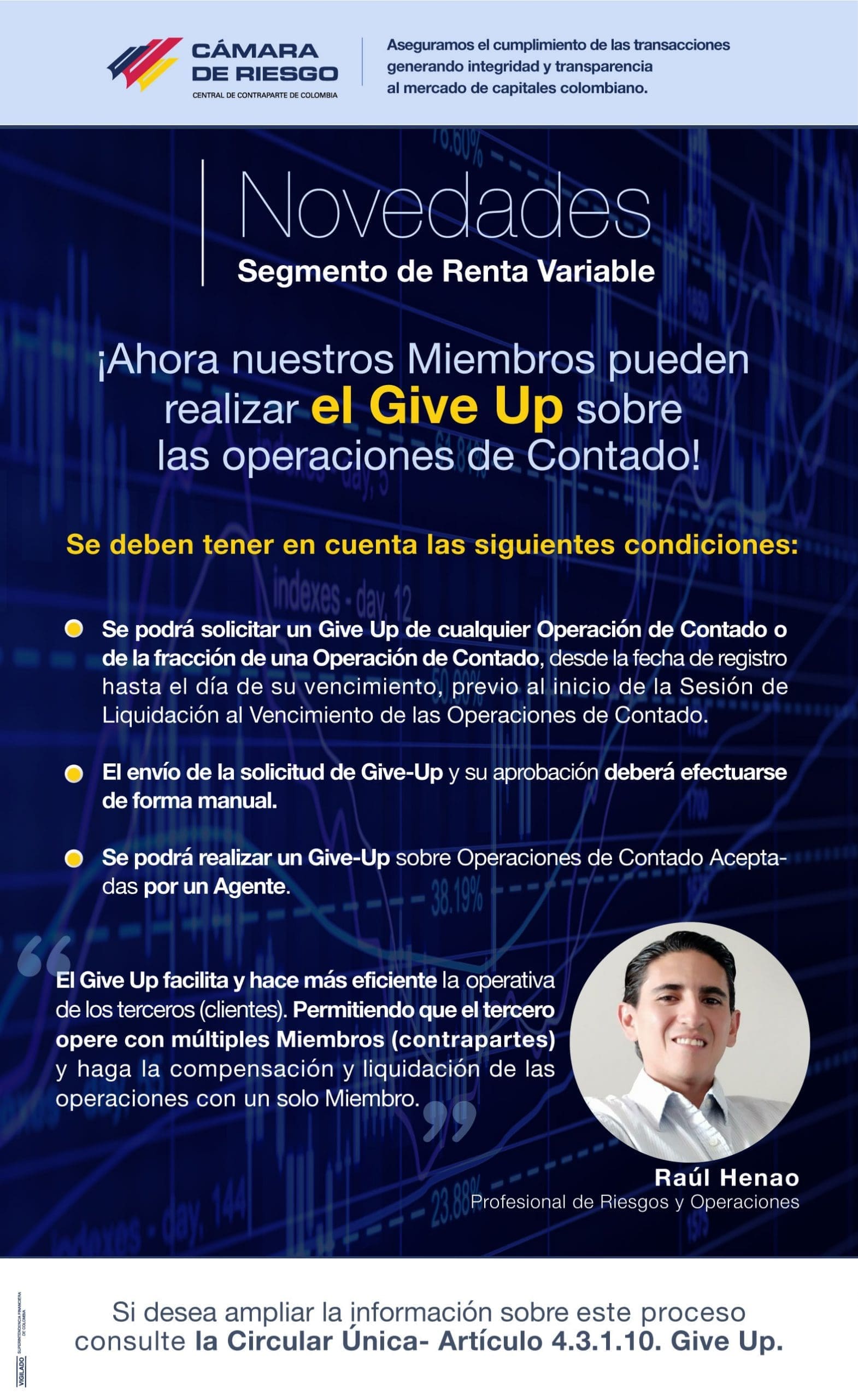 Novedades Segmento Renta Variable | Give Up sobre las operaciones de Contado
