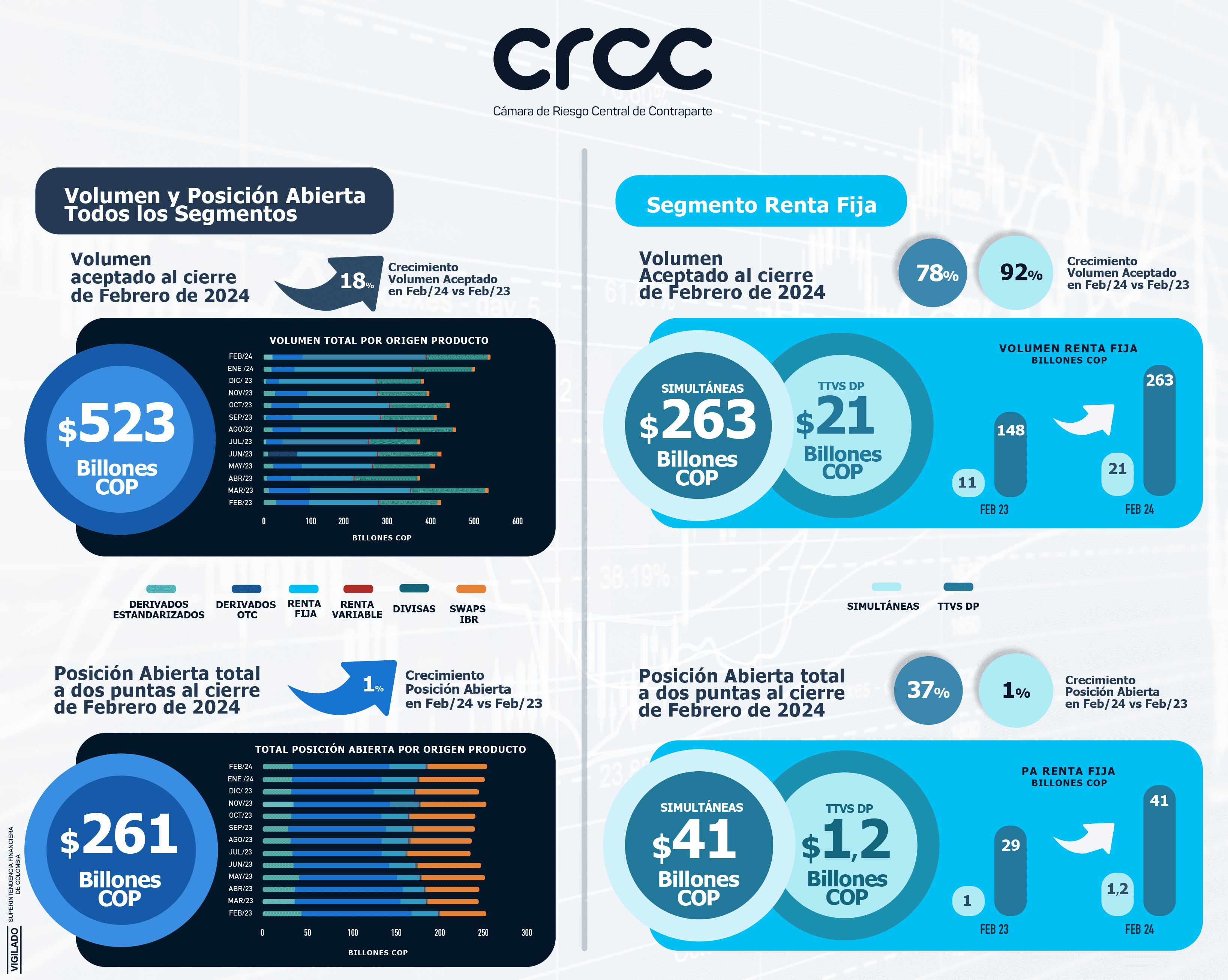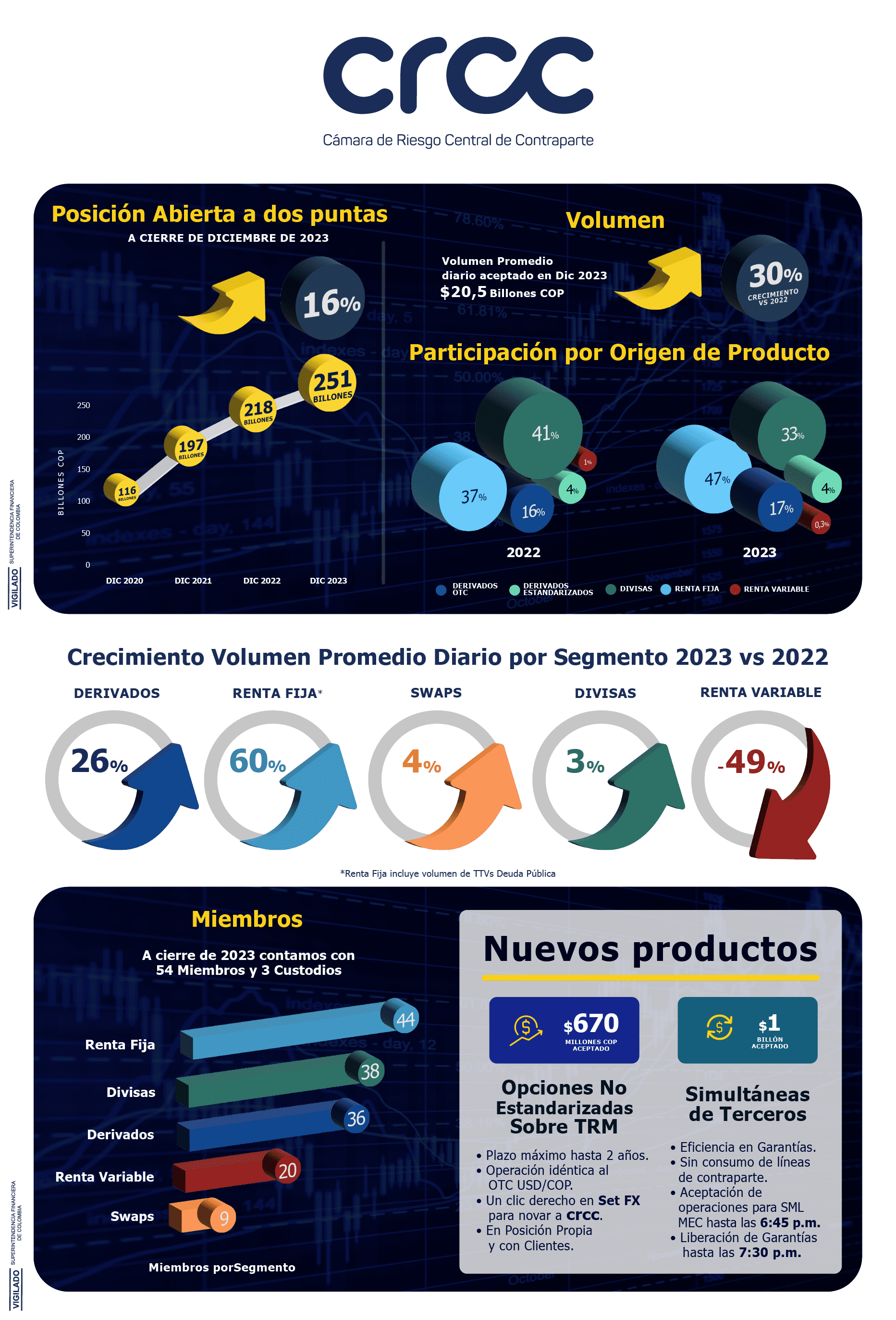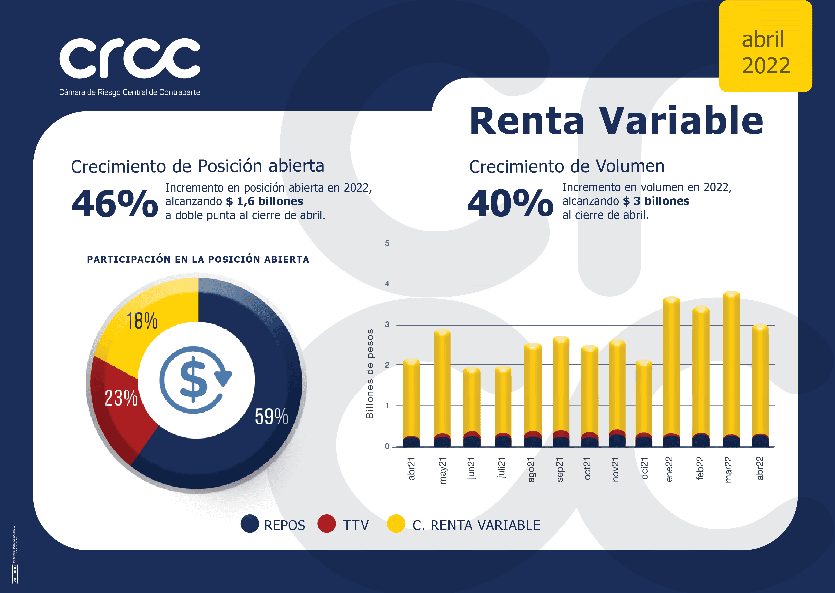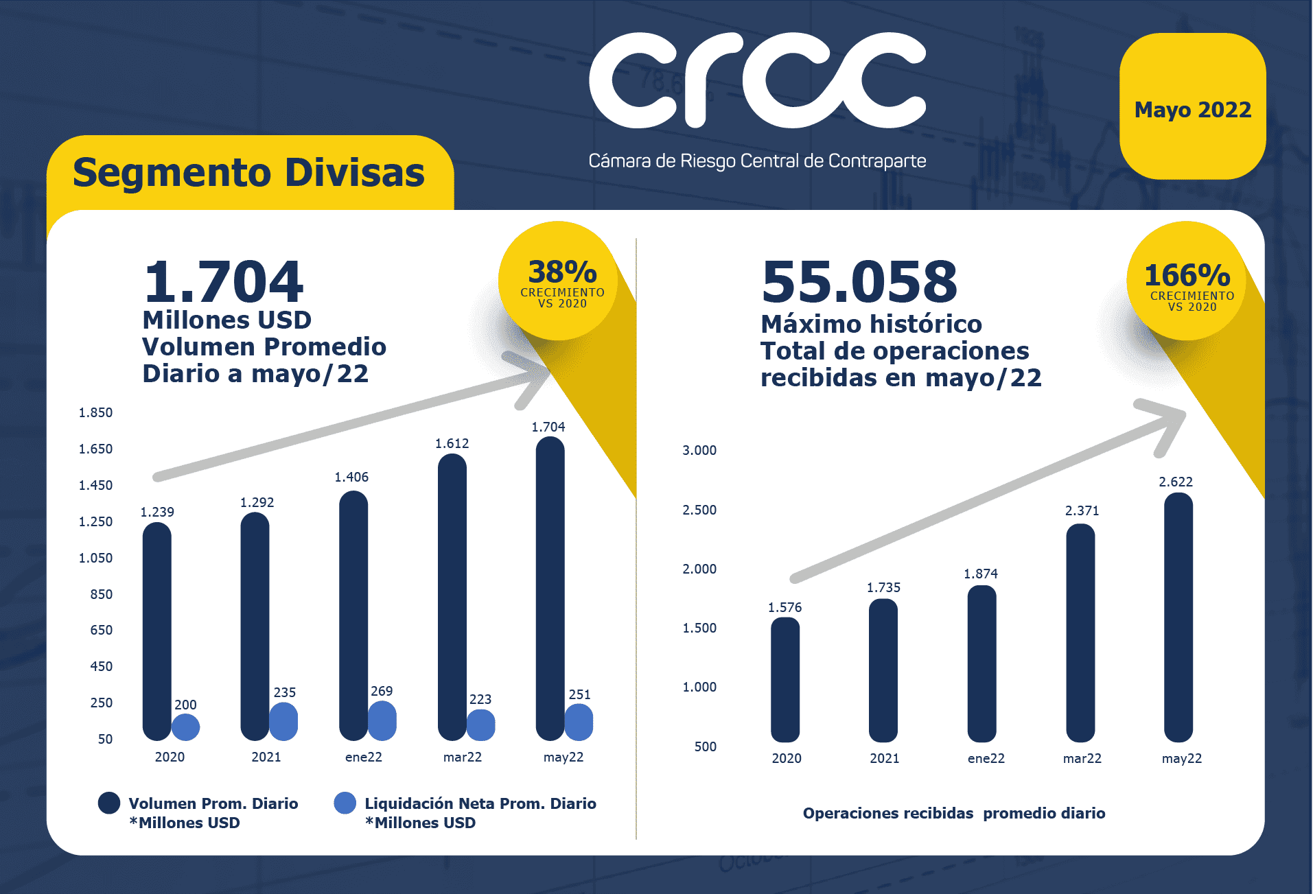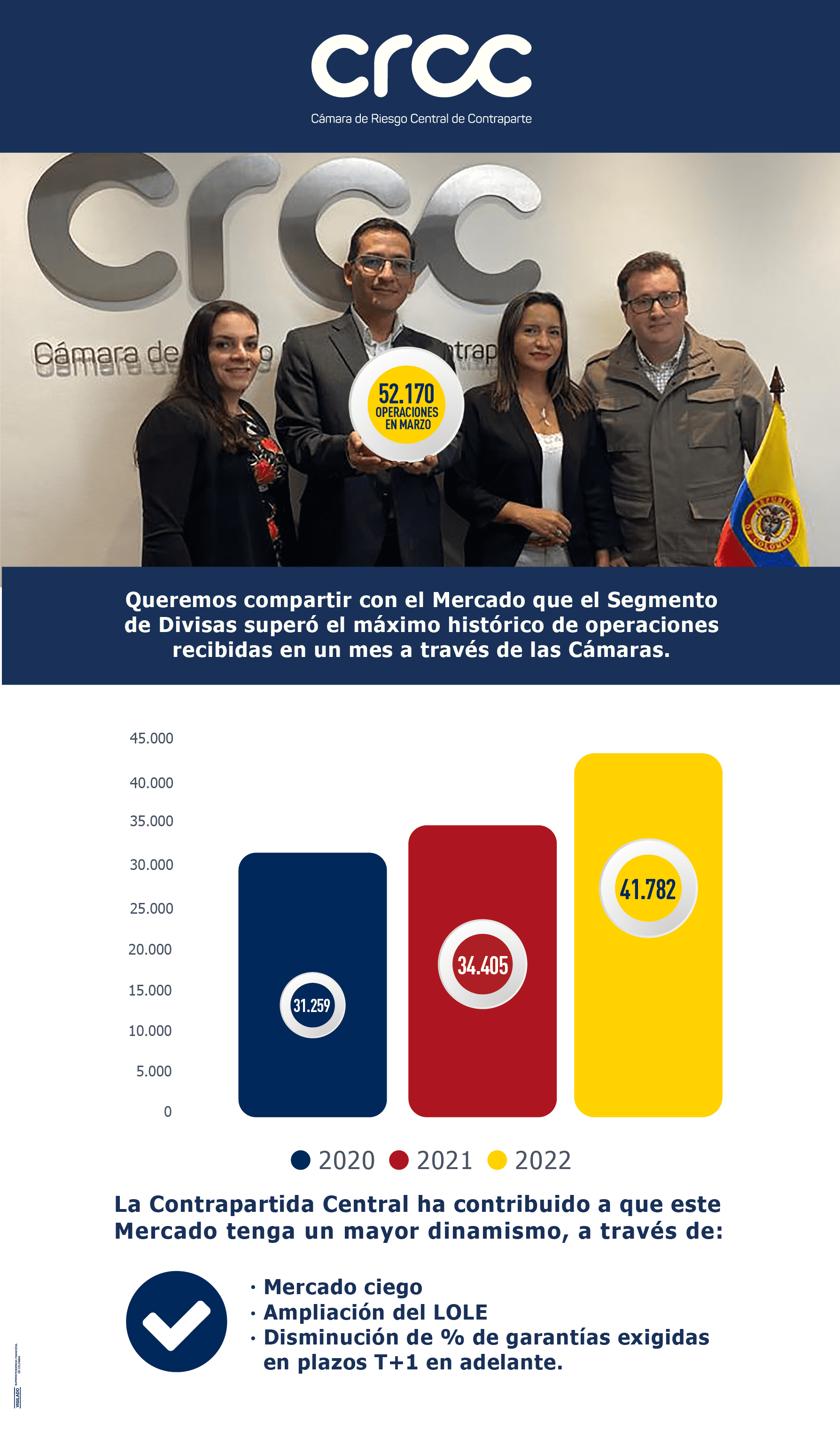 La Cámara de Riesgo Central de Contraparte de Colombia – CRCC S.A. tiene el gusto de informar al mercado que durante la primera semana de abril de 2013 se ha logrado un Nuevo Récord Histórico: el volumen promedio diario de operaciones.