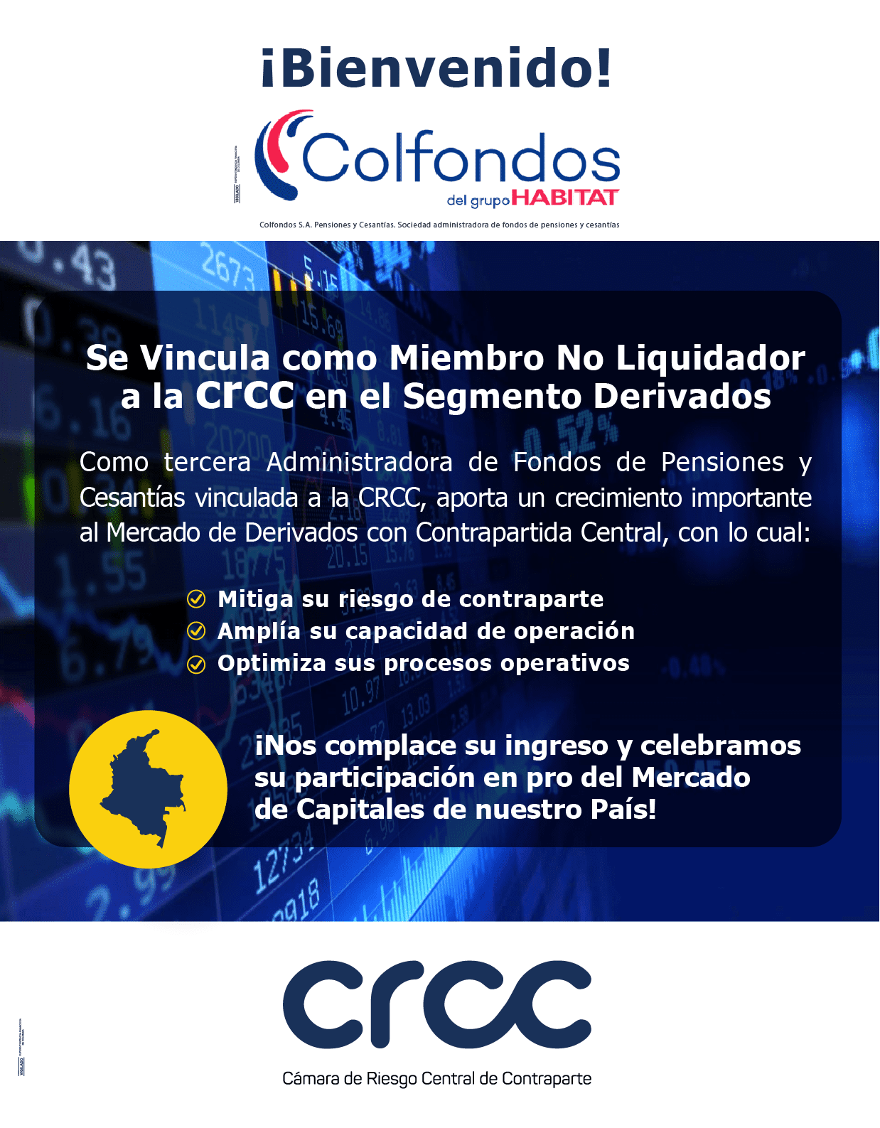 Informamos al mercado de derivados, que BNP Paribas Colombia Corporación Financiera S.A. ya esta vinculado formalmente con la CRCC como Miembro Liquidador Individual.