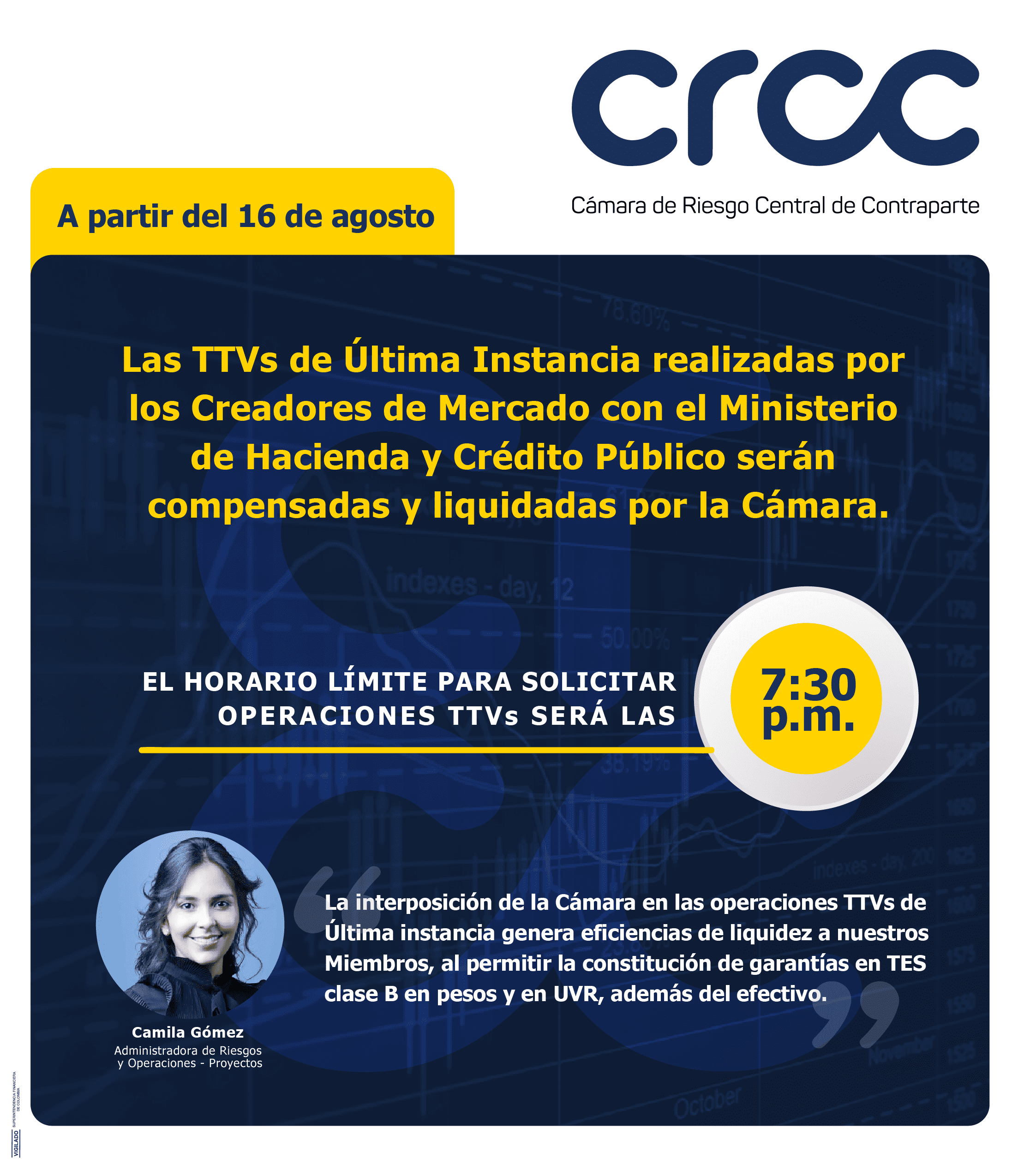 ¡A partir del 16 de agosto las TTVs de última instancia serán compensadas y liquidadas por la CRCC!