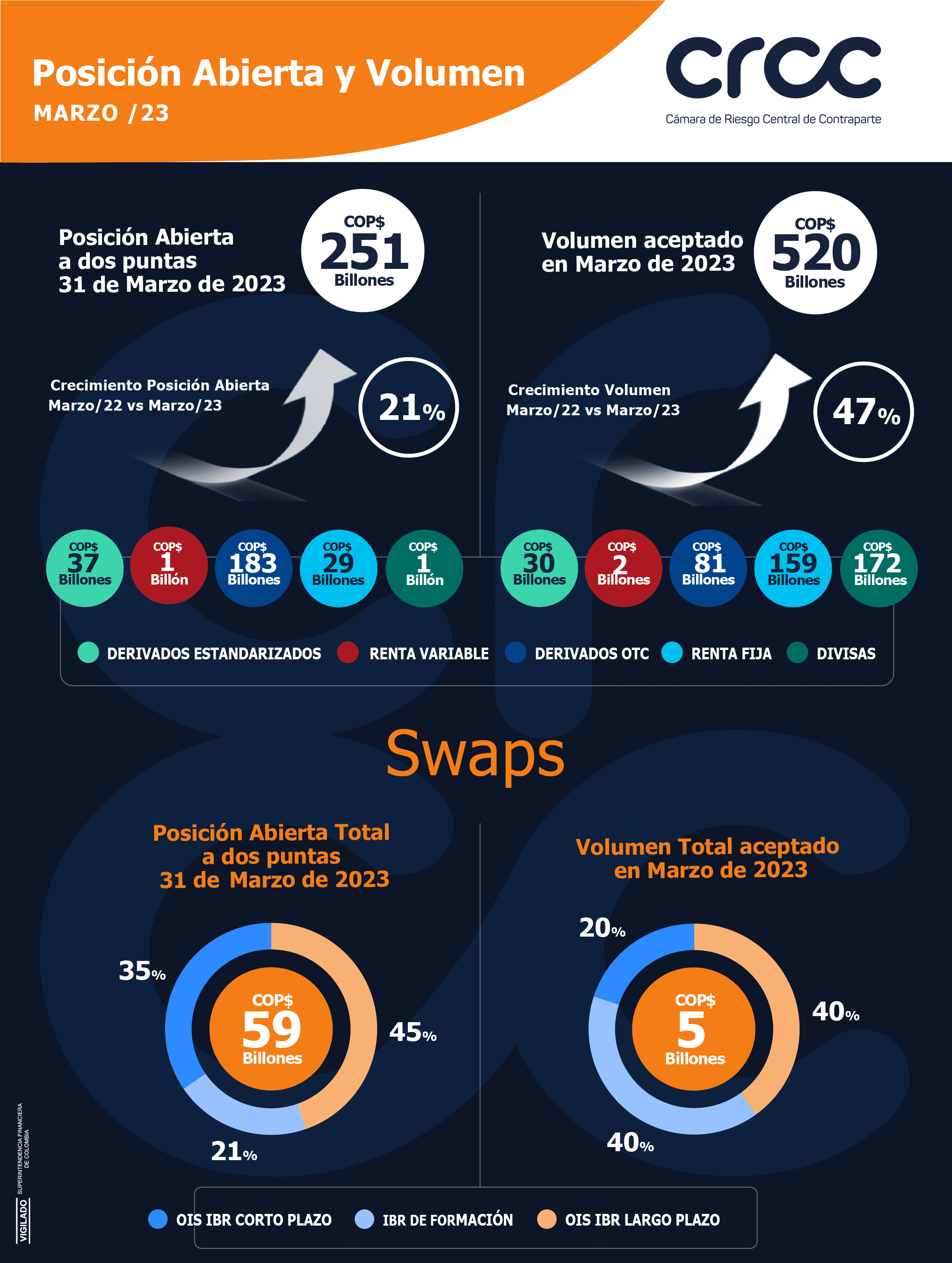 Al cierre del primer trimestre 2020 administramos una Posición Abierta a dos puntas de $123 billones de pesos